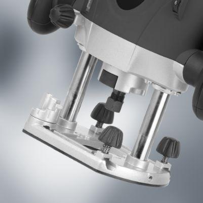Ручний фрезер має регулювання глибини фрезерування. Контролювати глибину зручно за допомогою шкали, нанесеної на корпусі інструменту. Саме регулювання здійснюється за допомогою 7-ступеневого упору з опорними майданчиками. Цей упор провертається навколо своєї осі та дозволяє швидко змінювати глибину обробки на 3 мм для кожного кроку.