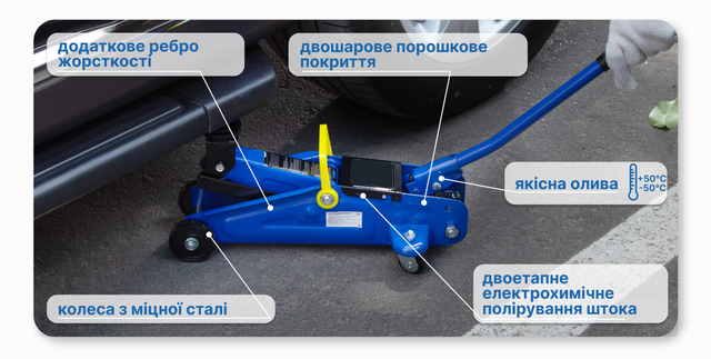 забезпечує домкрату маневреність та мобільність, роблячи його установку під автомобіль особливо зручною